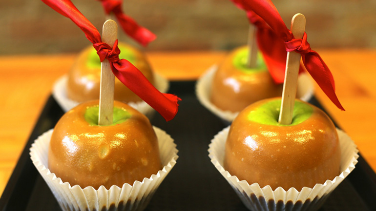 Járjunk a gyerekek kedvébe is a farsangi bulin: a KARAMELLÁBA MÁRTOTT ALMA garantált siker a kisebbek körében. Nyársakat szúrunk az almák közepébe, majd 2-3 dl mézet, 30-40 dkg cukrot és vajat 180 fokon 8-10 percig forraljuk. A tűzről levéve vaníliát keverünk hozzá, majd a pálcikák segítségével belemártogatjuk az almákat. Ezután akár színes cukrokban is megforgathatjuk a gyümölcsöket, végül állni hagyjuk, amíg a szósz meg nem szilárdul, ezután tálaljuk.